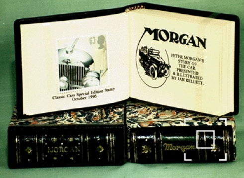 The frontispiece for each book is a Royal Mail postage stamp of a Morgan car from the Classic Car Series, October 1996. The foreword was written by Peter Morgan and the books are signed by him. I used to live just a few miles from the Morgan factory and would take the books in for him to sign as they were finished. He went in to work every day (health permitting) and was unfailingly courteous, always asking who the books were for, and he very often knew the purchaser. A few months before he died, I moved to Canada, and decided not to complete the edition without his signature. The edition is therefore terminated at 71 copies.***
